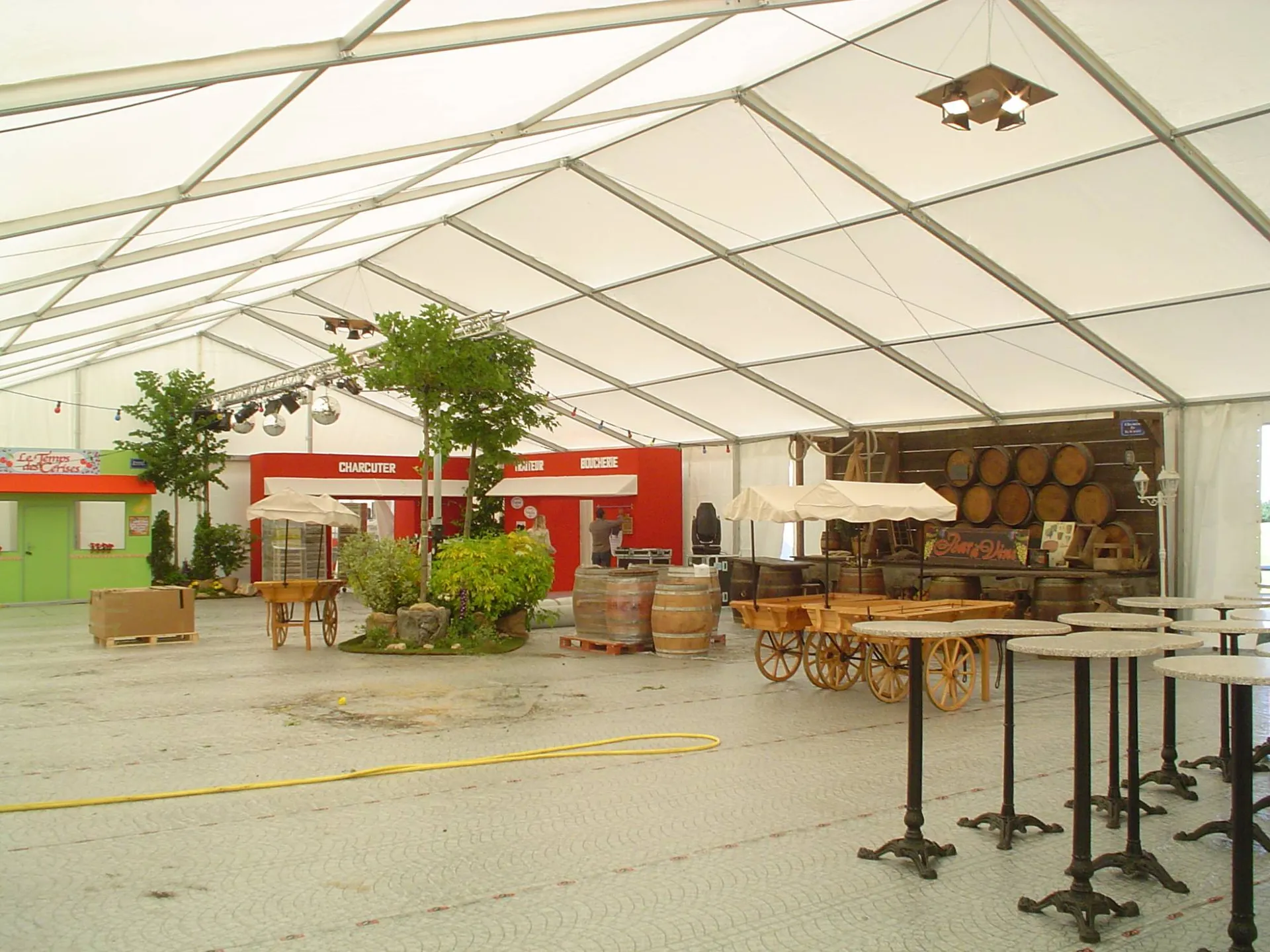 Chapiteaux de 900m2 avec agencement d'espace pour un événement professionnel.