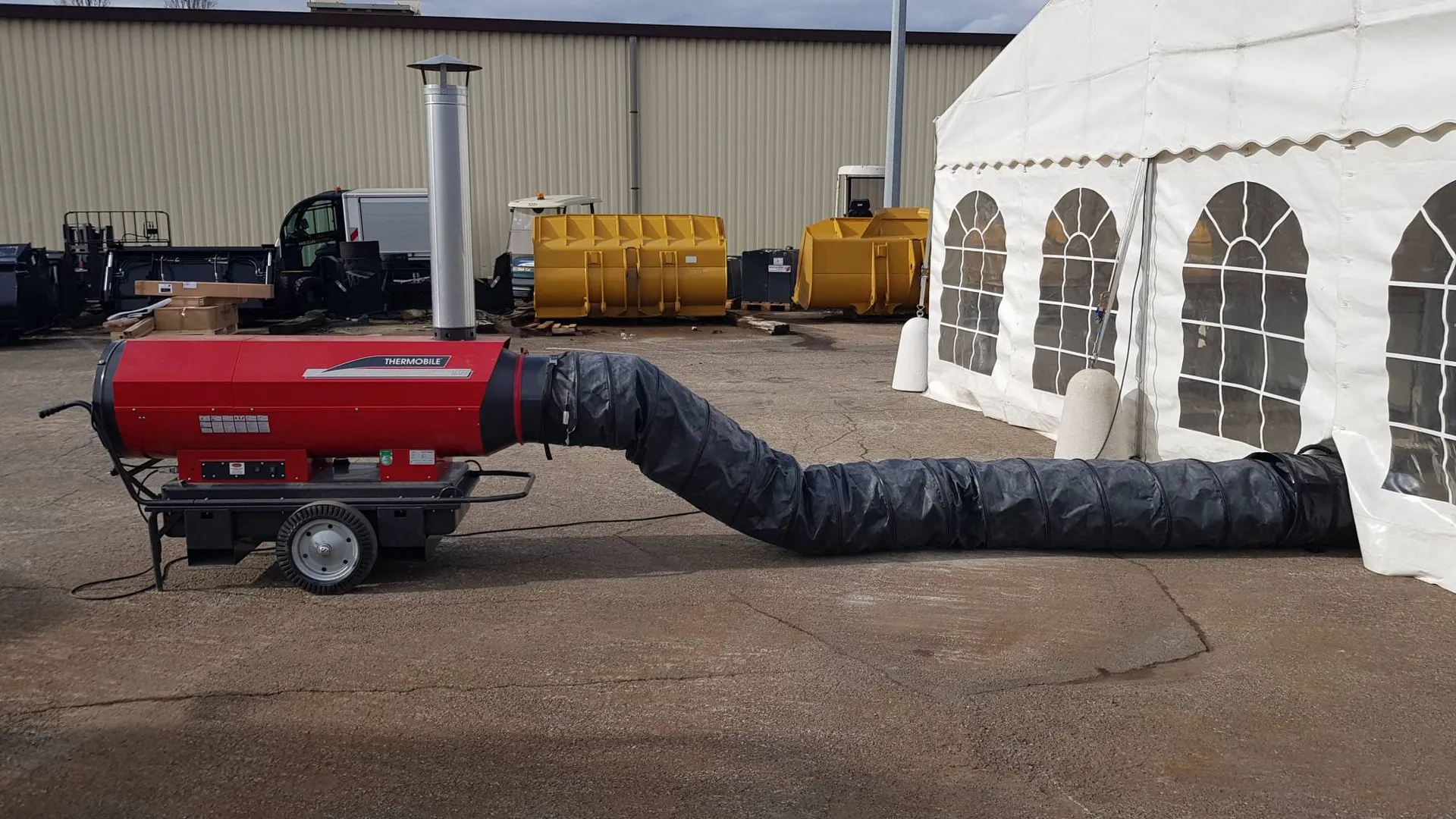 Interloc vous propose la location d'un canon à air pulsé au fuel de 70 Kw. Ce générateur thermique est conçu pour chauffer de grands volumes, que vous soyez sous une tente de réception, dans un local industriel ou même en extérieur à Lyon, Nancy ou Strasbourg.