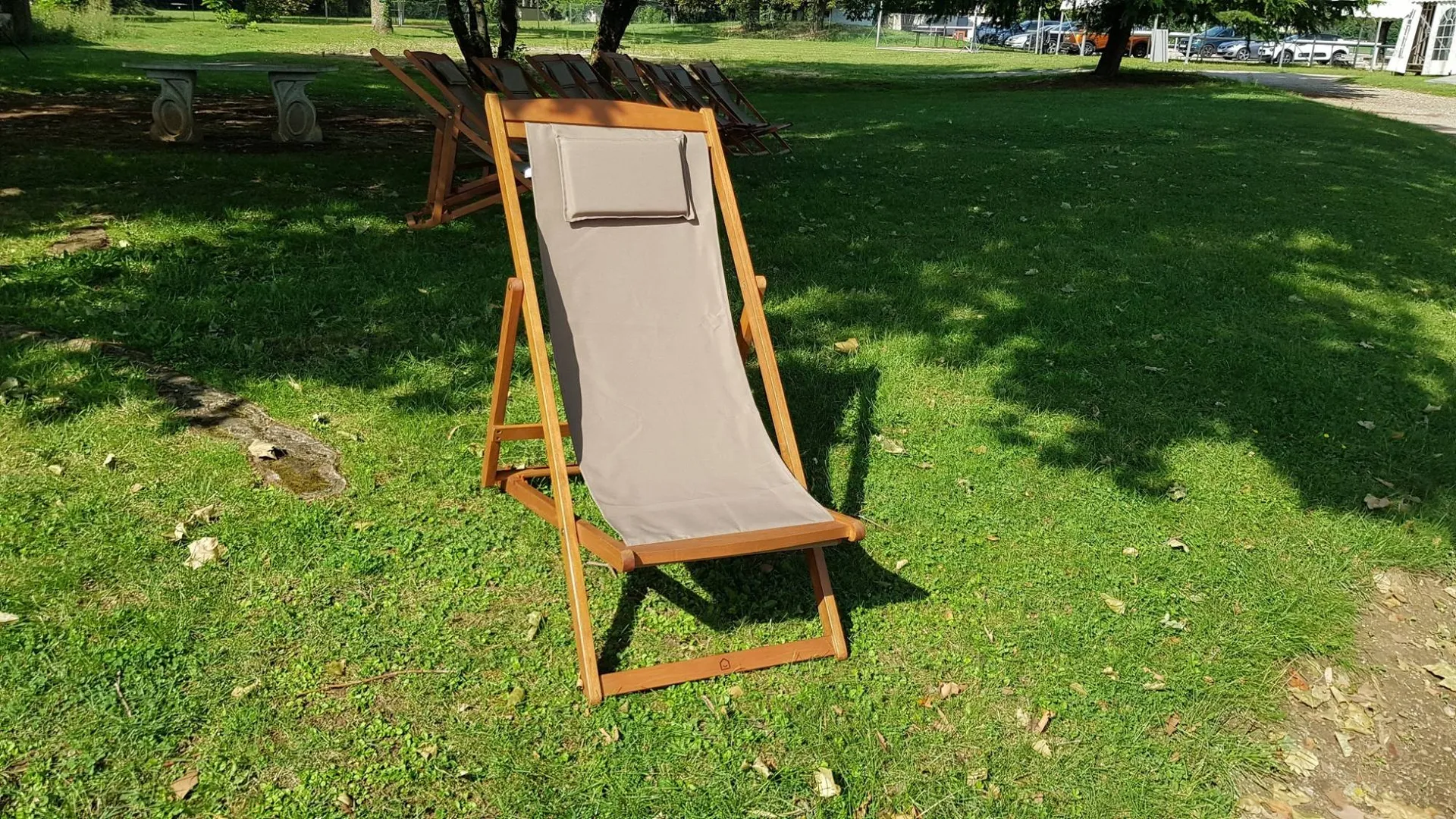 Interloc vous propose à la location la chilienne traditionnelle (transat). Avec sa toile de couleur crème et sa structure en bois, elle apporte instantanément une atmosphère décontractée et chaleureuse à vos aménagements.