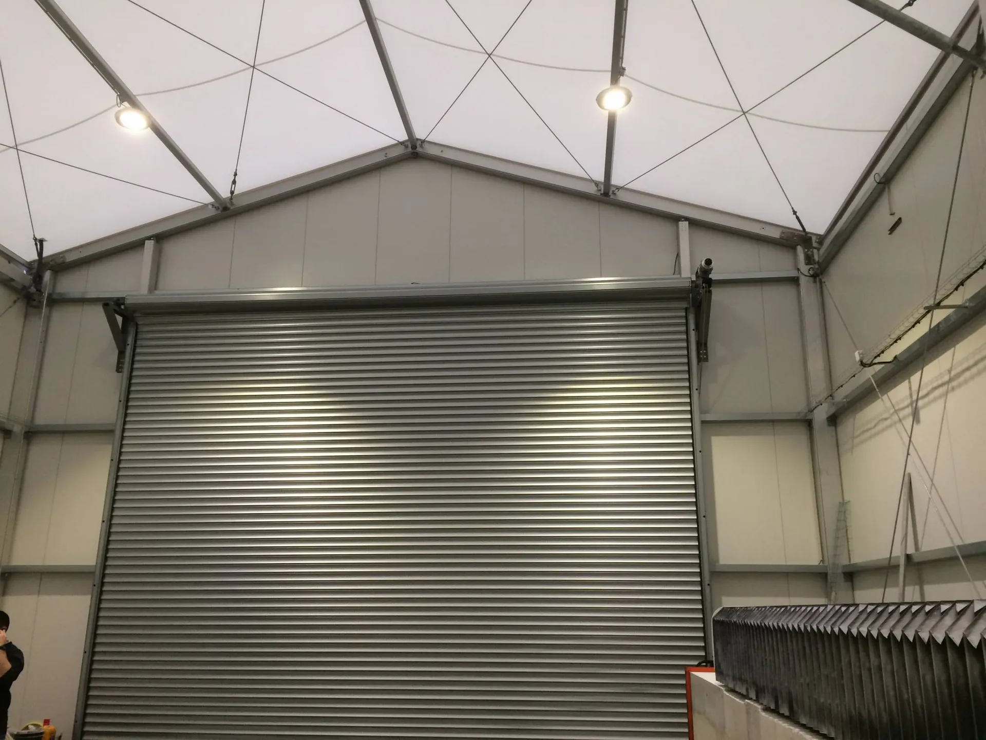 Les tentes de stockage de grande largeur peuvent être de hauteur variable de 3 à 6 mètres avec des options telles que des portes sectionnelles, toitures gonflables, gouttières et divers bardages afin de répondre au mieux aux attentes des clients .